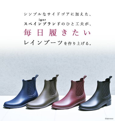 サイドゴア レインブーツ ショート レディース 雪 ブーツ 防水 igor イゴール|通勤 晴雨兼用 レインシューズ 軽量 ローヒール 雪 靴 すべらない ブーツ 黒 ブラック ネイビー ブラウン バーガンディ ワイン レッド インポート ブランド 雨靴 アウトドア カジュアル