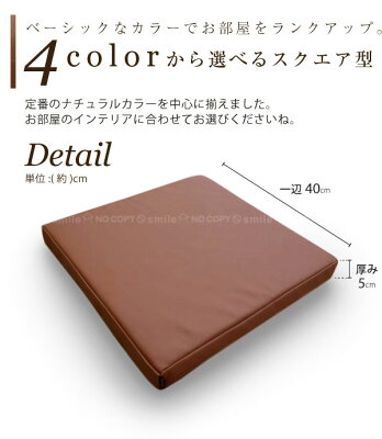 ■PUレザー調低反発クッションシリーズ ラウンドタイプ スクエアタイプ サイズ (約)幅40×奥行40×厚み5cm 材質 中材:低反発ウレタン カバー:ウレタン キーワード PU低反発スクエアクッション 角型 レザー調 座布団 座椅子 チェアパッド 合皮 ウレタン 4色 リビング ダイニング 寝室 ソファ シンプル ナチュラル インテリア ベージュ キャメル グレー ブラウン 97920 97921 97922 97923 201711-01
