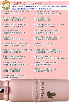 オリジナルメッセージ 名入れ ご注文方法 1: 彫刻パターン・字体を選択 ⇒「買い物かごに入れる」 2: 「注文画面に進む」 3: 「画面下のほうに「文字入れ内容記入欄」がございます ので、そちらに文字入れ 内容をご記入ください。
