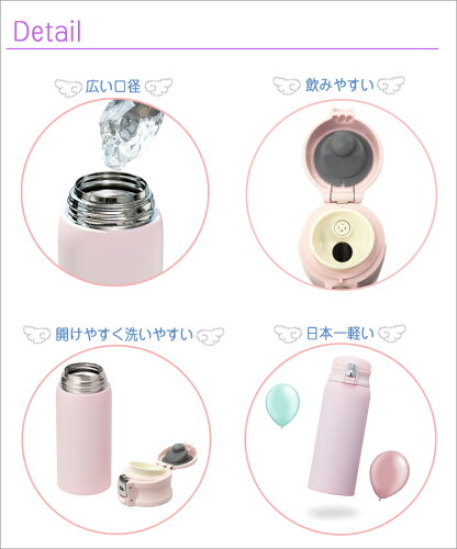 一見普通のマグボトルに見えますが、手に取ってみるとすぐに実感できるのが驚きの軽さです! マットな質感のマシュマロのようなパステルカラーが可愛い、携帯用ステンレスボトルです。